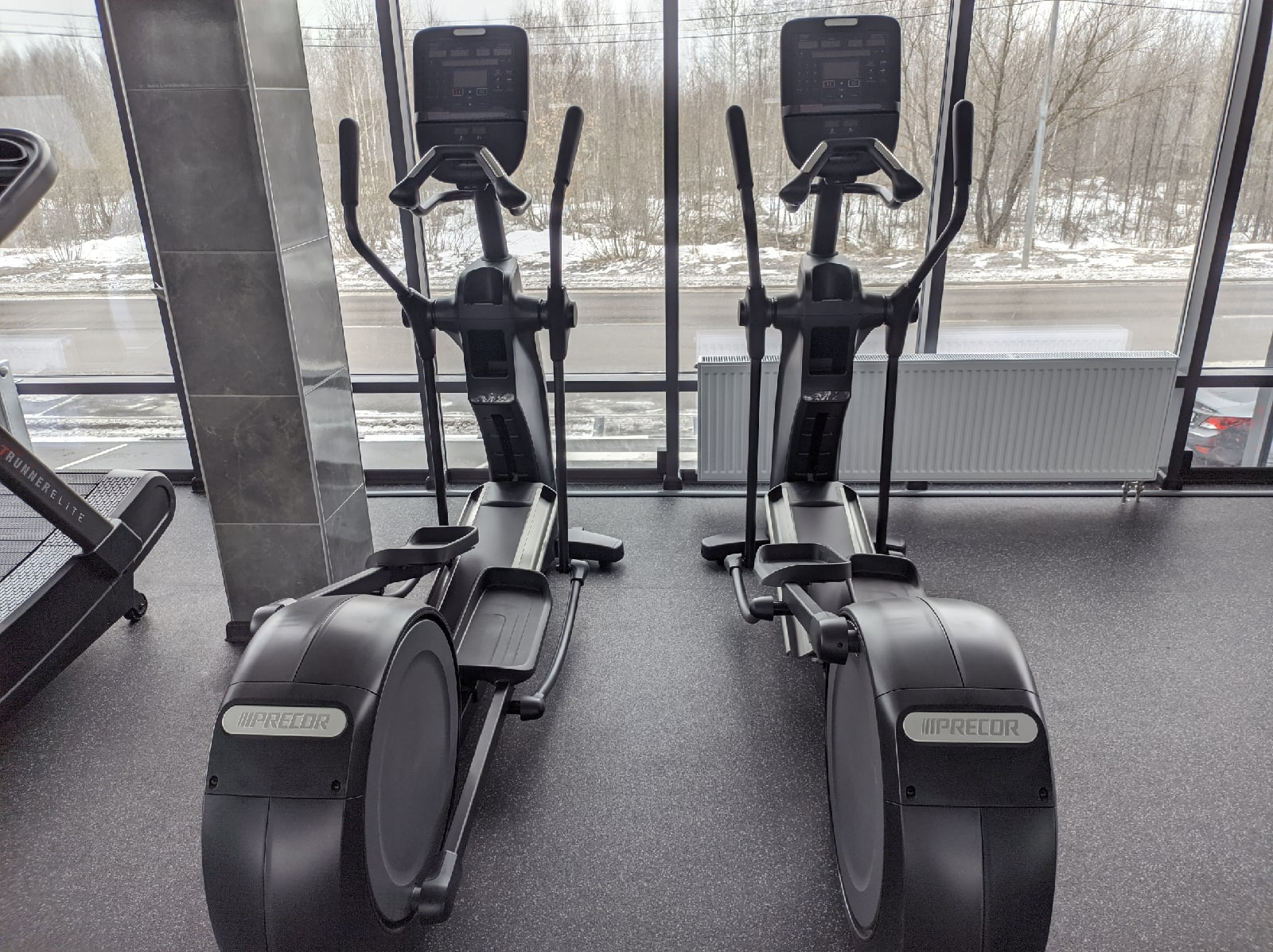 Эллиптический тренажер PRECOR предназначается для использования в спортивных клубах самого высокого класса. Длина шага составляет 54 см, что позволяет тренироваться спортсменам любого роста.
